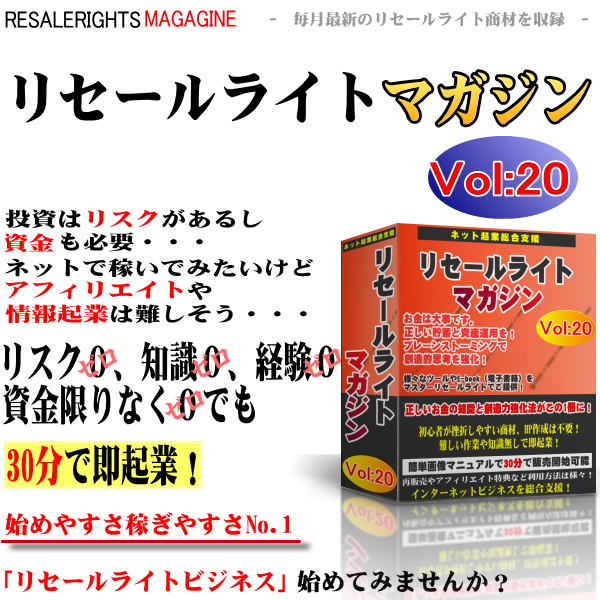このリセールライトマガジンを手にすることにより、あなたは商材を作成するための