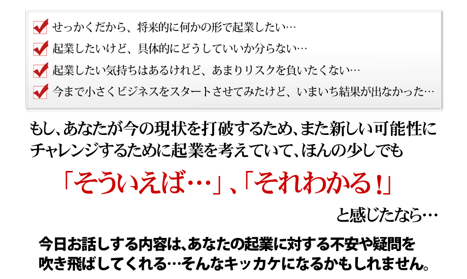 起業に向けて本当の意味でスタートさせることが出来る…そう思いませんか?
