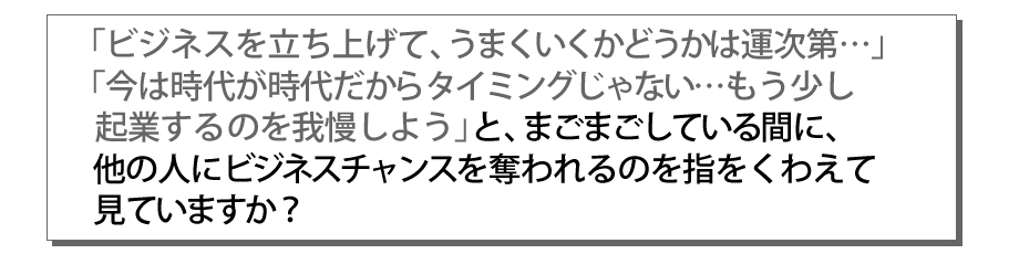 数ヵ月後には、ビジネスをスタートしている…そんな行動的な自分を選びますか?