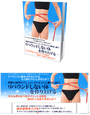 など、ここでは一部しか紹介できませんが、あなたがこれから先、ダイエットを卒業し、リバウンドに悩まされることのない日常を過すために必要な方法がぎっしりと詰めこまれています。
