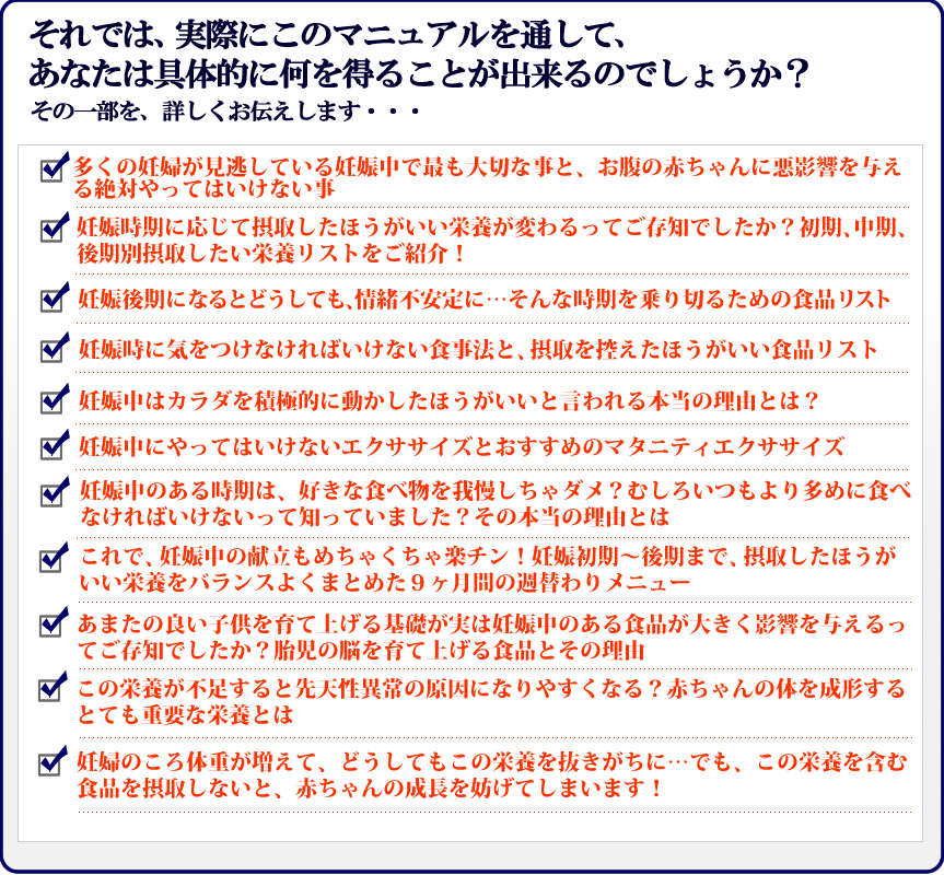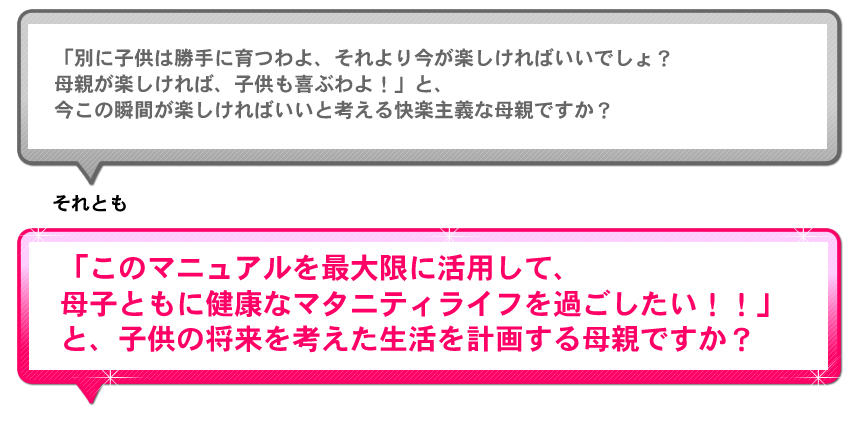 それとも、子供の将来を考えて、母子ともに健康な出産を迎えるためのマニュアルを、2980円で手に入れますか?