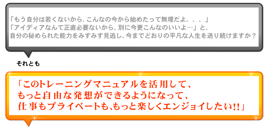 これは、あなたがこのマニュアルを通して、発想力に富んだ体質を身に付けてしまえば、