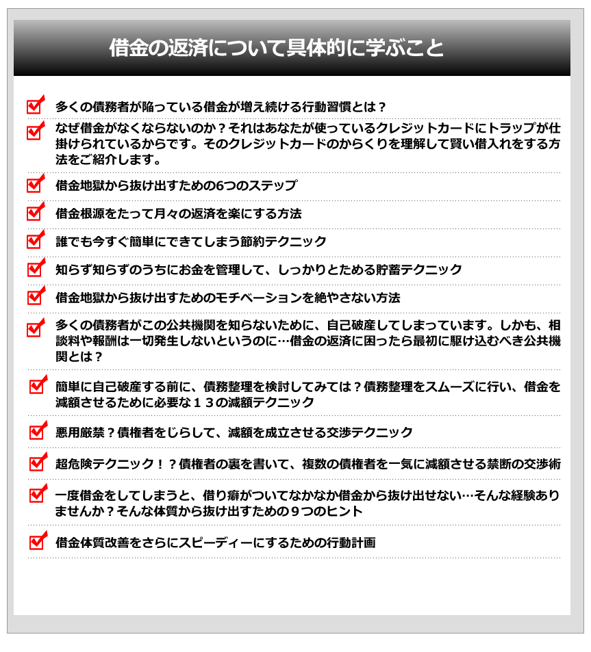 これは、あなたがこのマニュアルを通して、借金を返済する方法を身に付けてしまえば、