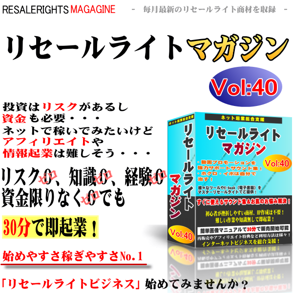収録された商材を単品で売っても構いませんし、このリセールライトマガジンとして