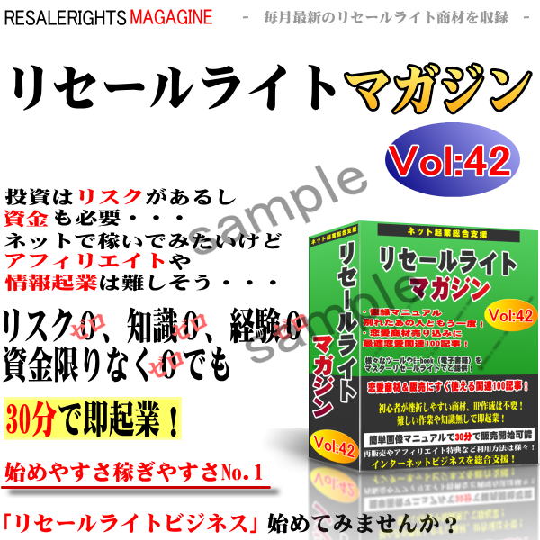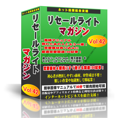 収録された商材を単品で売っても構いませんし、このリセールライトマガジンとして