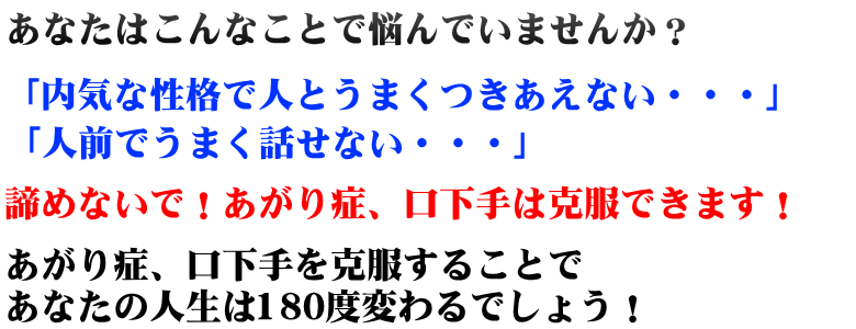 内気、口下手、あがり症の人の悩みとしてよくあるものですが