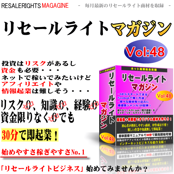 このリセールライトマガジンを手にすることにより、あなたは商材を作成するための