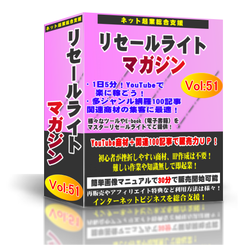 収録された商材を単品で売っても構いませんし、このリセールライトマガジンとして