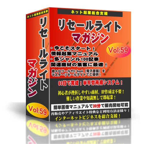 収録された商材を単品で売っても構いませんし、このリセールライトマガジンとして