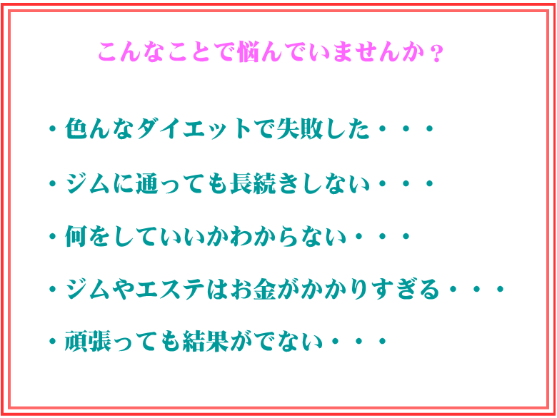 「色んなダイエットやトレーニングを試しているけど結果がでない・・・」