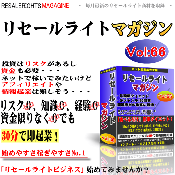 このリセールライトマガジンを手にすることにより、あなたは商材を作成するための