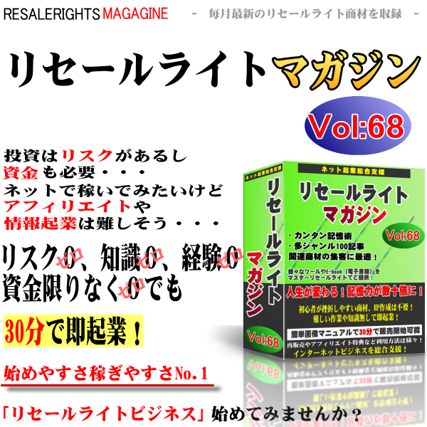 このリセールライトマガジンを手にすることにより、あなたは商材を作成するための