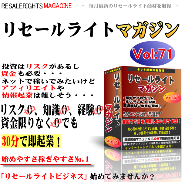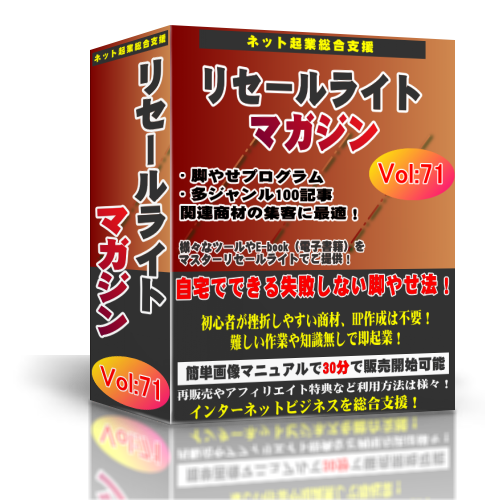 収録された商材を単品で売っても構いませんし、このリセールライトマガジンとして