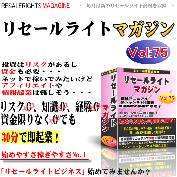このリセールライトマガジンを手にすることにより、あなたは商材を作成するための