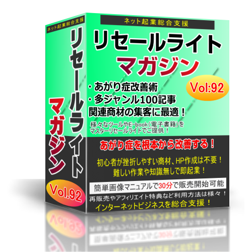 このリセールライトマガジンを手にすることにより、あなたは商材を作成するための