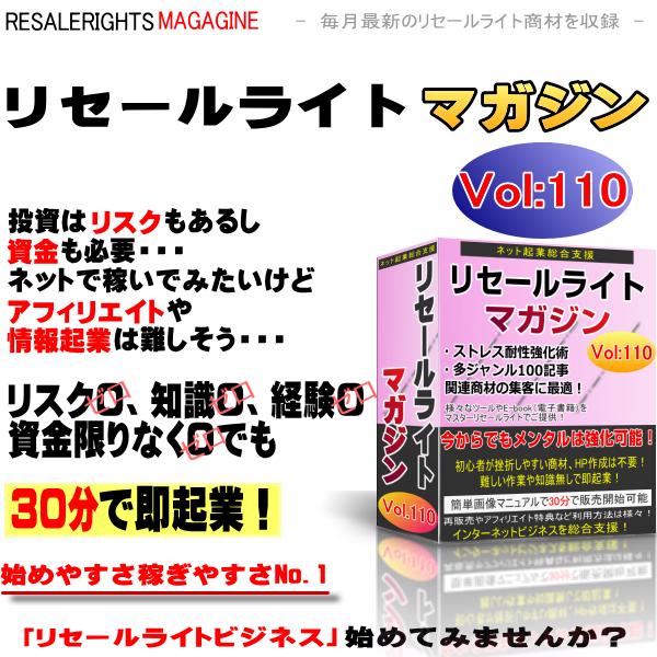 このリセールライトマガジンを手にすることにより、あなたは商材を作成するための