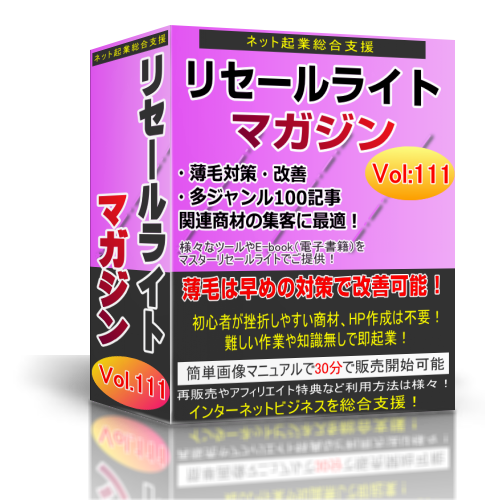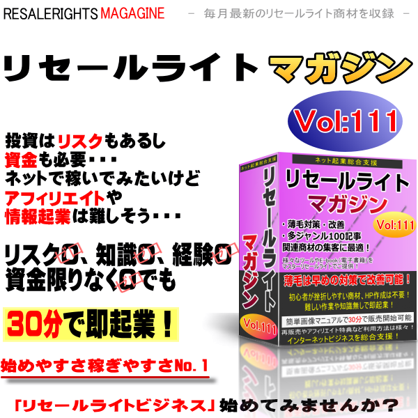 収録された商材を単品で売っても構いませんし、このリセールライトマガジンとして