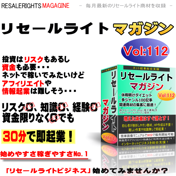 このリセールライトマガジンを手にすることにより、あなたは商材を作成するための
