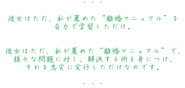 『自分で出来る、円満離婚マニュアル』を信じ、