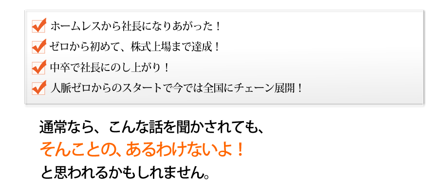 通常ビジネスを立ち上げるなら、それなりの知識、それなりの人脈、それなりの資金が必要だ!