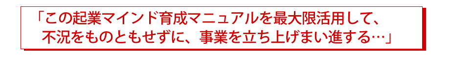 これは、あなたがこのマニュアルを通して、起業家マインドを身に付けてしまえば、