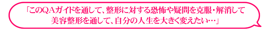 このQAガイドは「整形は危険だから絶対しない!」「でも、今もっているコンプレックスも解消したい」と、葛藤しているあなたにお贈りしたいのです。