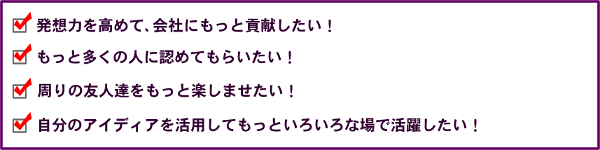 日々の生活、仕事の中で自分の中に秘められた発想力をしっかりと成長させ、