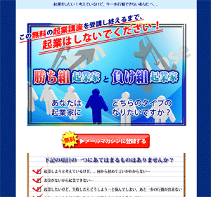 また、見込客を教育フォローするために、6回にわたる起業講座メールマガジン「スモールビジネスの始め方」も用意されています。